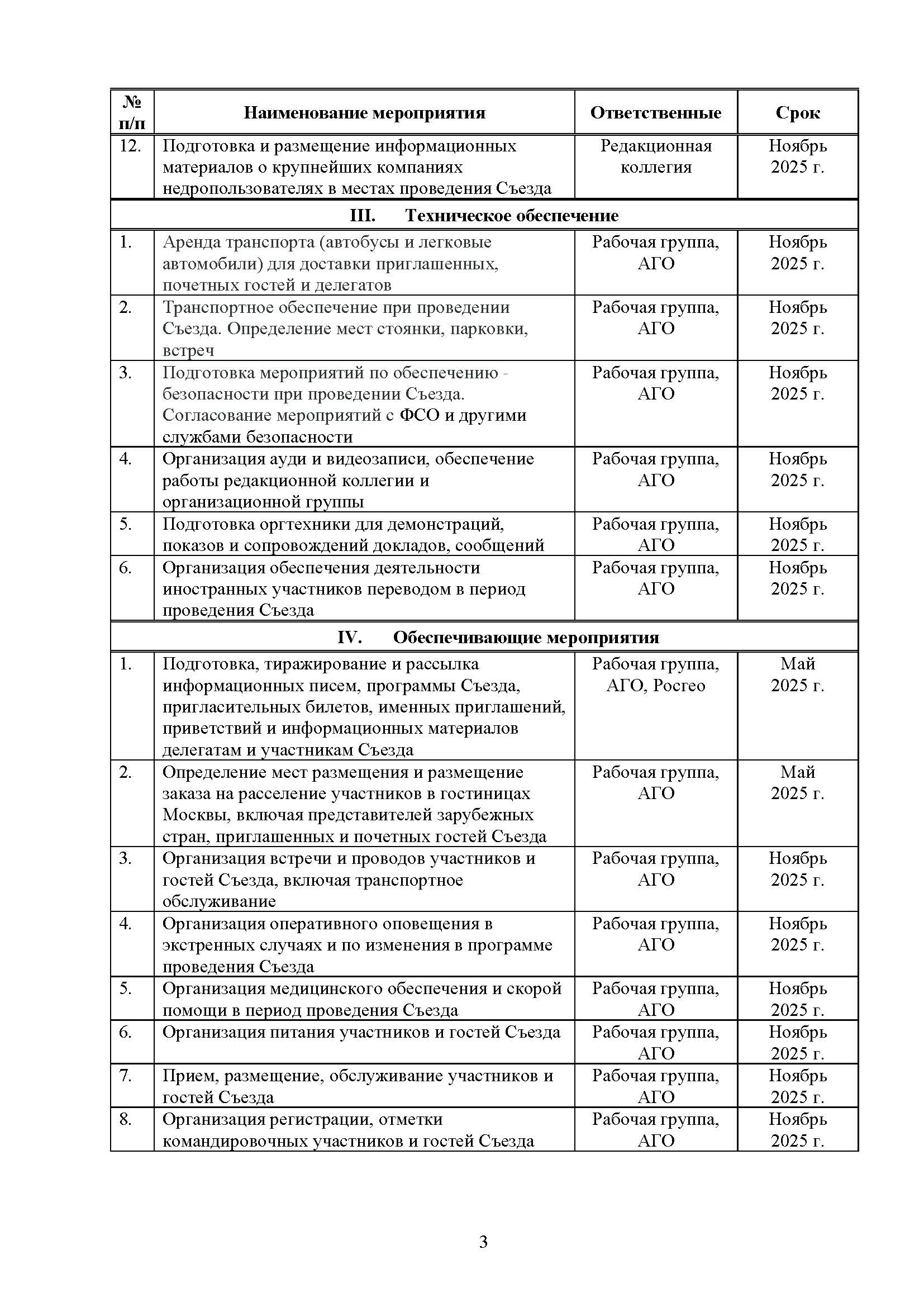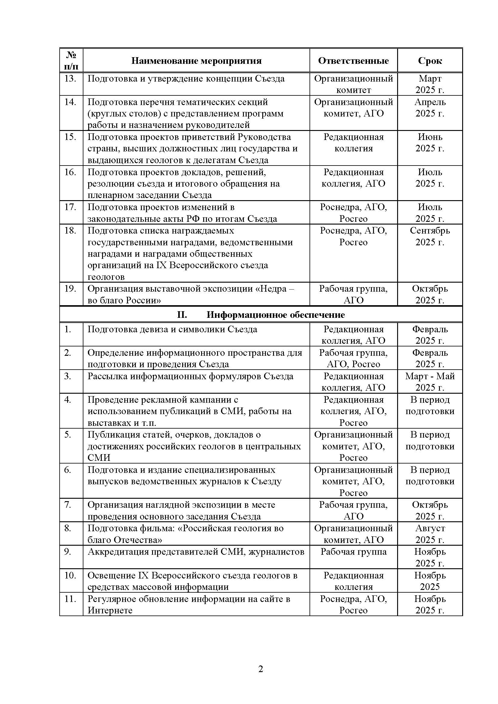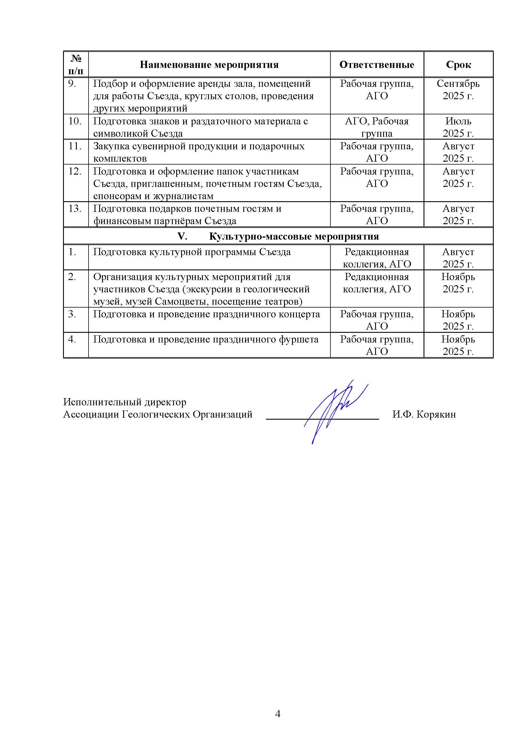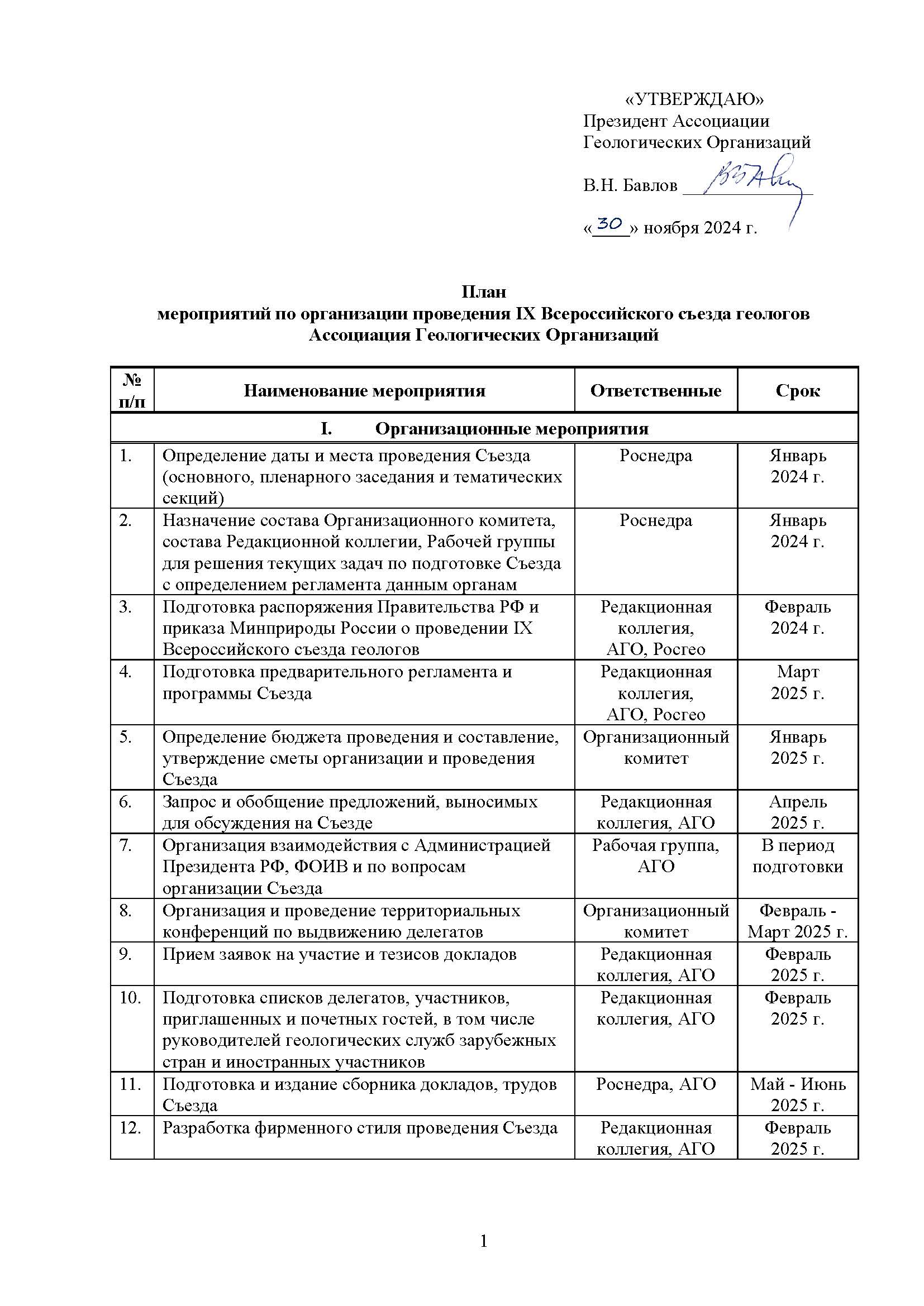 План мероприятий по организации проведения IX Всероссийского съезда геологов Ассоциации Геологических Организаций