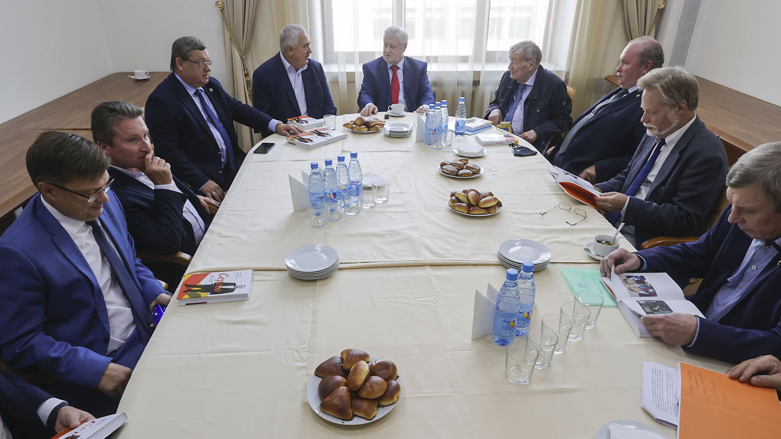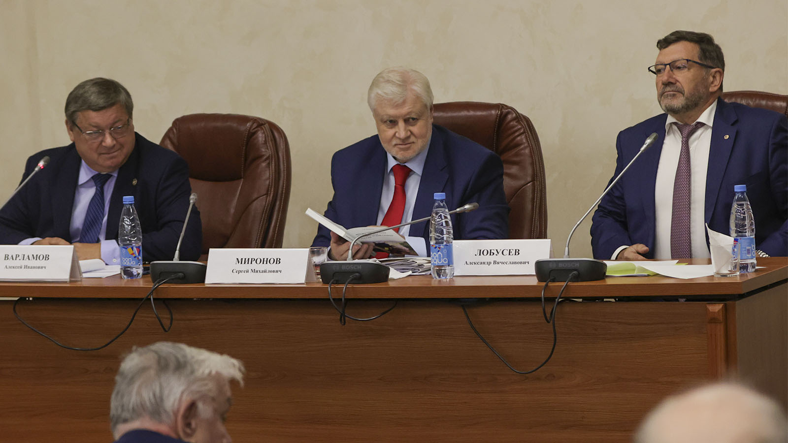 В ходе беседы с руководством вуза перед пленарной частью мероприятия Сергей Миронов обсудил ситуацию в современной геологоразведке, спекуляции на антропогенном факторе и на теории потепления. Политик вручил присутствующим экземпляры своей автобиографической книги. В свою очередь, член Совета ветеранов "Ветераны-геологоразведчики" Михаил Бунеев подарил парламентарию памятный набор с Конституцией и государственной символикой Российской Федерации.