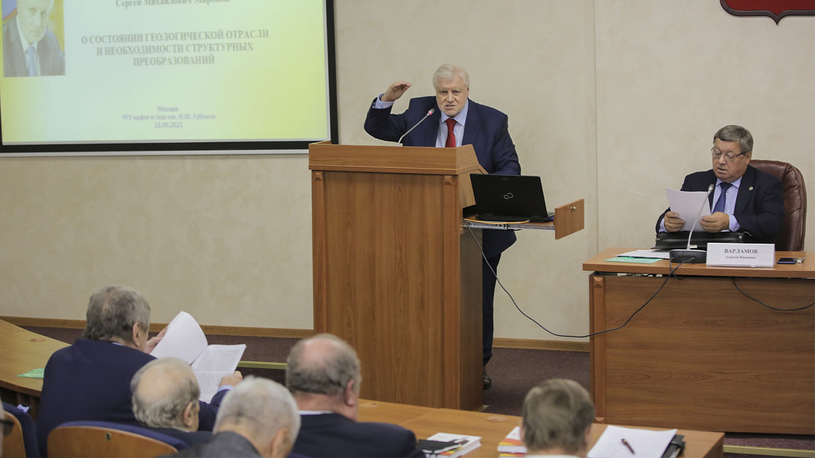 13 сентября Председатель Партии СПРАВЕДЛИВАЯ РОССИЯ – ЗА ПРАВДУ, руководитель фракции "СР" в Государственной Думе Сергей Миронов принял участие в общественных слушаниях Ассоциации Геологических Организаций "О состоянии геологической отрасли и необходимости структурных преобразований", которые состоялись в РГУ нефти и газа (НИУ) имени И.М. Губкина.