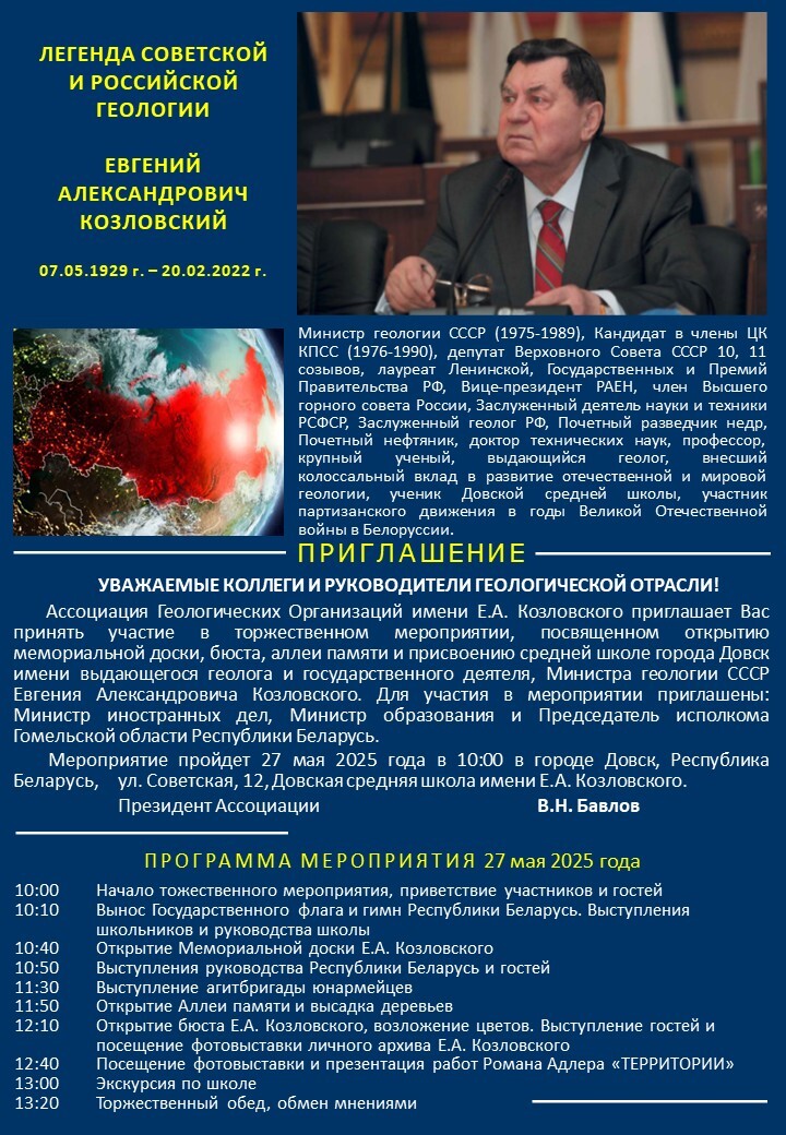 Приглашаем Вас на открытие школы имени Е.А. Козловского в Довск