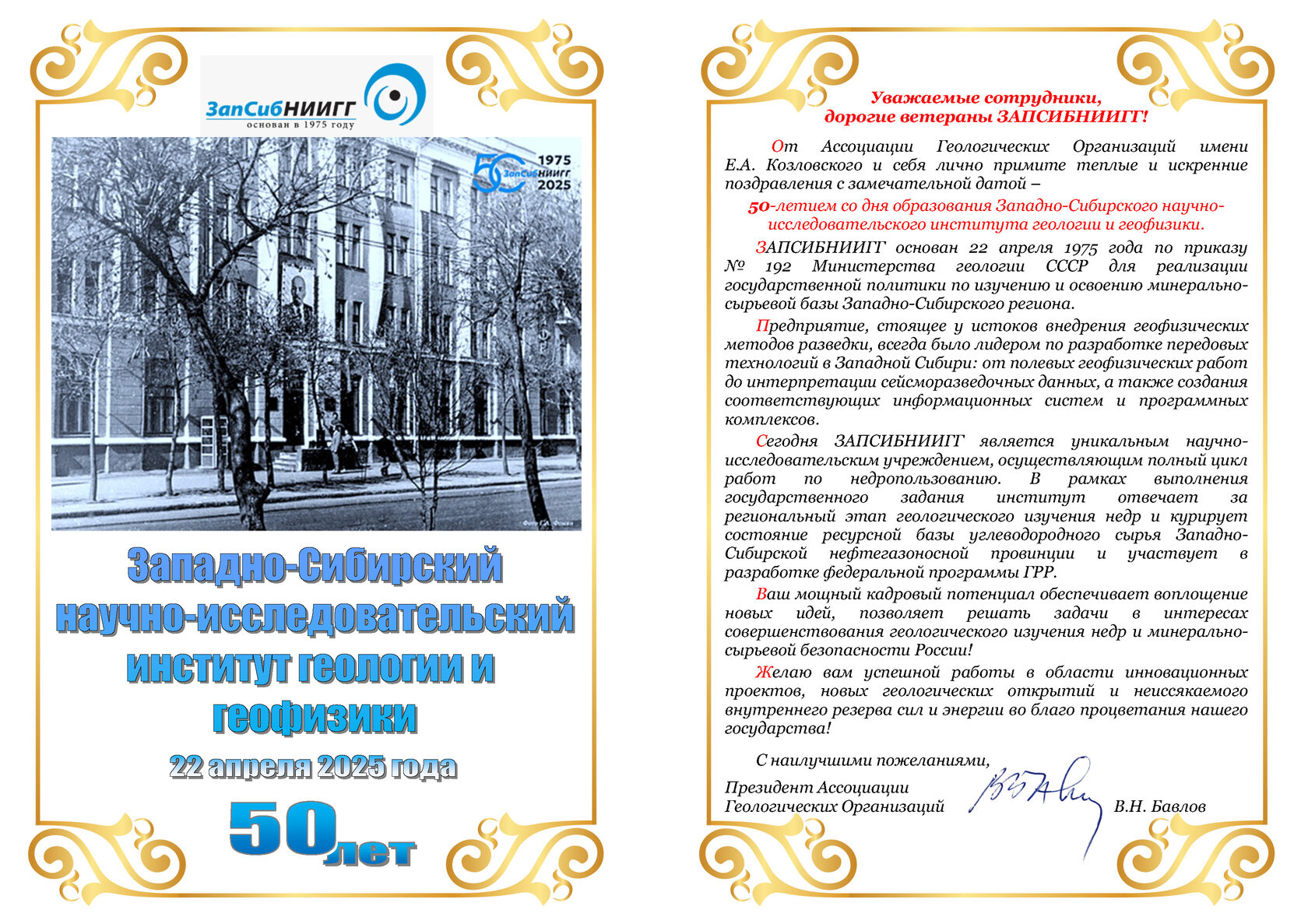 Ассоциация Геологических Организаций имени Е.А. Козловского от души поздравляет прославленный коллектив ЗапСибНИИГГ с юбилеем.